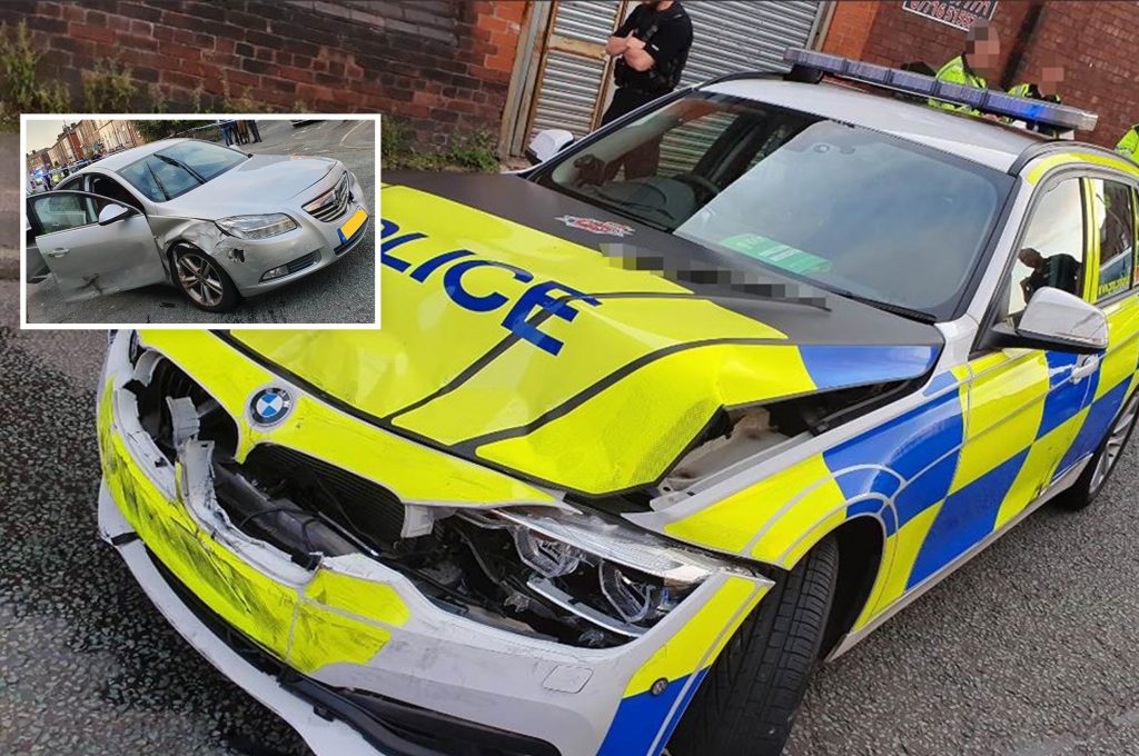 A CARJACKER who smashed into a top of the range BMW police car during a high-speed chase has been arrested in Manchester.